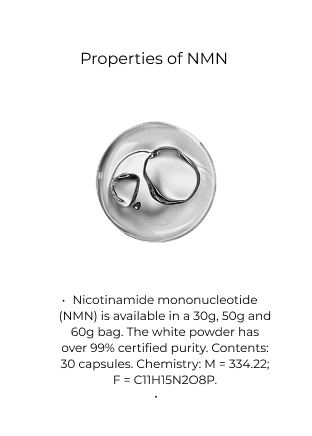 NMN encourages the production of NAD+ a coenzyme that promotes cellular energy production. NAD+ is found in every cell of the body and necessary for creating adenosine triphosphate (ATP) the compound your body uses to create cellular energy. NMN recharges your cells, supports DNA repair, lenghtens Telomeres, and slow down the biological clock.